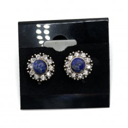 Antique gold-plated Nickel-free plating 0.4" approx. width stud with removable crystal halo surround, center sodalite stone. In excellent like new condition.