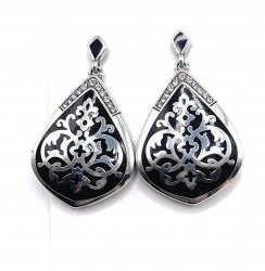 featuring black enamel, silver-tone metal, and Swarovski crystals, with styles like heart-shaped posts or dangle earrings. 1 3/4" drop and are 1" wide. (JE6512-Retail $68) In excellent like new condition. Price: $68.00 Sale Price: $40.00 You Save: $28.00 (41%)