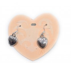 Silver plated heart earrings, 1.25 inches long. In new condition. Price: $68.00 Sale Price: $35.00 You Save: $33.00 (49%)