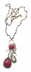 Matte gold with red jasper accented, 28 inches long, in excellent like new condition. Price: $68.00 Sale Price: $20.00 You Save: $48.00 (71%)