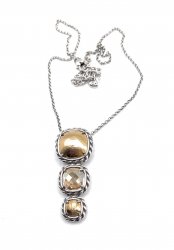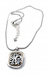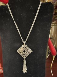 18 inches long, pendant is1.5 inches long, silver and gold plated, in excellent used condition. Price: $78.00 Sale Price: $35.00 You Save: $43.00 (55%)
