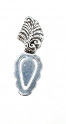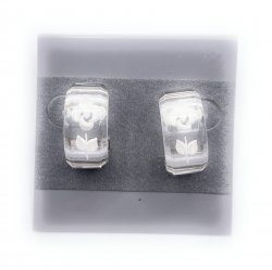 3/4 inch long, silver plated with clear resin, with an inset tulip accent in white. In excellent used condition.