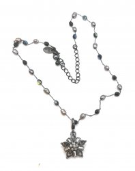 15-18 inches long, graytones, has a removable pendant, about 3/4 inches long. In like new condition. Price: $38.00 Sale Price: $12.00 You Save: $26.00 (68%)