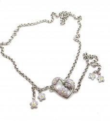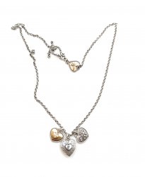 18 inches long, silver plated, heart charms, has Gratitude, Passion, Embrace Life, toggle closure, in excellent like new condition.