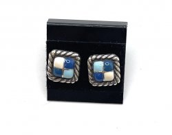 1/3 inches long, post earrings, blue and white check pattern. In excellent like new condition.