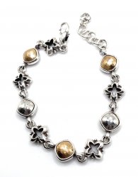 8 inches long, gold and silver plated, lobster claw clasp. In excellent like new condition.