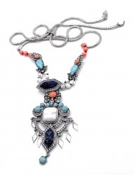 #N511WHAR, semi-precious coral-hued stone, howlite, sodalite + turquoise, clear crystal pave, antique + shiny rhodium-plating, 32" approx. lengths + 2" extender. adjustable sliding closure + lobster clasp, in excellent like new condition. Price: $144.00 Sale Price: $40.00 You Save: $104.00 (72%)