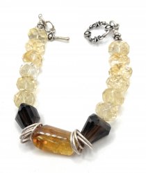 8 1/4 inches long, silver plated with yellow and brown smoky quartz beaded, toggle clasp. In excellent like new condition.