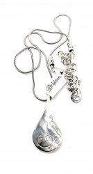 18 inches long, pendant is 1.5 inches long, silver plated, in new with tags on condition. Price: $68.00 Sale Price: $35.00 You Save: $33.00 (49%)
