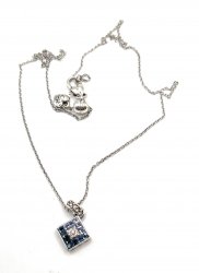 18 inches long, Silver plated with cut crystal accents,. Pendant is 2 inches long. In excellent like new condition. Price: $68.00 Sale Price: $35.00 You Save: $33.00 (49%)