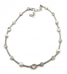 18 inches long, Silver and pearl collar necklace. In excellent used condition. Price: $68.00 Sale Price: $35.00 You Save: $33.00 (49%)