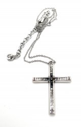 18 inches long, Silver plated with cut crystal accents,. Pendant is 1.5 inches long. In excellent like new condition. Price: $68.00 Sale Price: $35.00 You Save: $33.00 (49%)