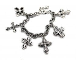 8.5 inches long, silver plated with cross charms. Lobster claw clasp. In excellent like new condition. Price: $68.00 Sale Price: $35.00 You Save: $33.00 (49%)