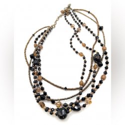 21 inches long, multiple strands, copper and black beads. In excellent like new condition.
