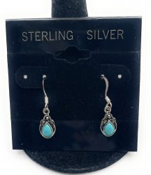 Sterling silver earrings, 3/4 inches long, faux turquoise and marcasite crystals. In excellent condition.