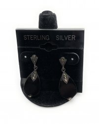 Sterling silver earrings, black with marcasite, 1 1/4 inches long. In excellent used condition.