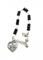 8.5 inches long, silver plated with black beads, heart charm, In excellent like new condition. Price: $77.00 Sale Price: $38.00 You Save: $39.00 (51%)