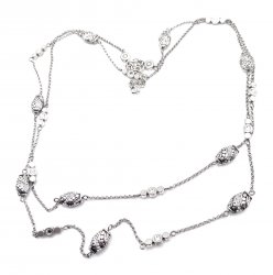 24 inches long, silver plated with cut crystal accents, pendant is 2.5 inches long. In excellent like new condition. Price: $98.00 Sale Price: $35.00 You Save: $63.00 (64%)