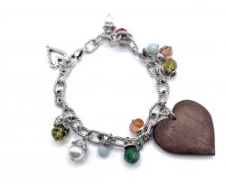 8 1/4 inches long, silver plated, with wooden heart, about 1 inch long, mixed colored beads. In excellent like new condition. Price: $68.00 Sale Price: $35.00 You Save: $33.00 (49%)