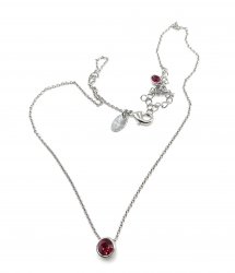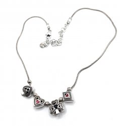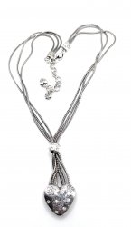 Detailed necklace in silvertone with accent crystal. It is 16-19 inches long. In new condition.