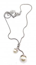 19 inches long, silver plated, 2 inch pearl drop. In excellent used condition.