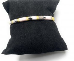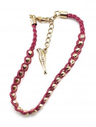 Gold plated with fushsia braided band, it is 8 inches long. In like new condition. Price: $39.00 Sale Price: $18.00 You Save: $21.00 (54%)