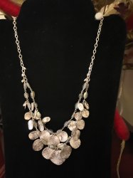 Gorgeous silver necklace with fluttering coins and small labradorite beads! 18" with 2" extender. In excellent like new condition. Price: $79.00 Sale Price: $28.00 You Save: $51.00 (65%)
