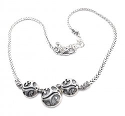 18 inches long, pendant is1.5 inches long, silver and gold plated, in excellent used condition. Price: $78.00 Sale Price: $35.00 You Save: $43.00 (55%)