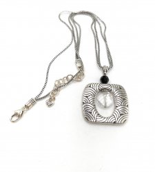 pendant is about 1 inches long, antiqued matte silver with crystal accent, with gold trim accent. In excellent used condition. Price: $29.00 Sale Price: $10.00 You Save: $19.00 (66%)