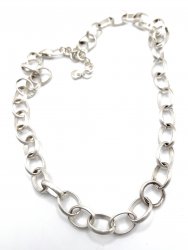 18 inches long, features heart pendants, silver plated and in excellent like new condition.