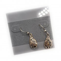 1 inch long, silver plated earrings on wires. In excellent condition.