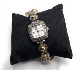 8.5 inches long,silver and gold plated, adjustable toggle clasp, need news battery. In good used condition. Price: $118.00 Sale Price: $25.00 You Save: $93.00 (79%)