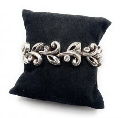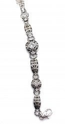 Silver plated bracelet. has unique botton snap clasp, 7 inches long, in excellent excellent. Price: $78.00 Sale Price: $35.00 You Save: $43.00 (55%)