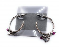 Silver plated with hearts and red crystal charms, post earrings, 1.5 inches long. In excellent condition. Price: $78.00 Sale Price: $35.00 You Save: $43.00 (55%)