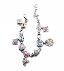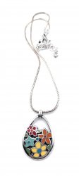18 inches long, Silver planted with enamel flowers pendant. Pendant is 1.5 inches long. In excellent condition. Price: $68.00 Sale Price: $35.00 You Save: $33.00 (49%)