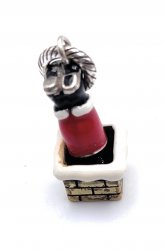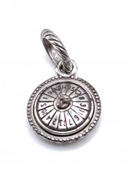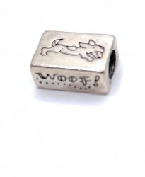 3/4 inches long, silver plated with inscribed dog. In good used condition.