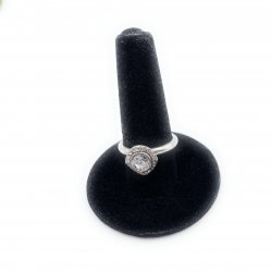 Silver plated with cubic zirconia ring, in good used condition. Price: $68.00 Sale Price: $35.00 You Save: $33.00 (49%)