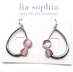 Silver plated with cats eye pink accents earrings, 1.75 inches long. In new condition. Price: $28.00 Sale Price: $15.00 You Save: $13.00 (46%)