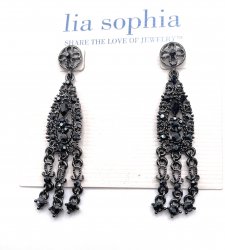 Hematite with black crystal post earrings, about 2.5 inch long, in new condition. Price: $48.00 Sale Price: $20.00 You Save: $28.00 (58%)