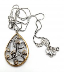 36 inches long, silver plated, pendant is gold and silver plated with cut crystal accents, pendant is 3 inches long. In excellent like new condition. Price: $88.00 Sale Price: $35.00 You Save: $53.00 (60%)