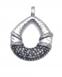Matte Silver plated pendant with a magnetic clasp, cut crystal accents, 3 1/4 inches long. In excellent like new condition. Price: $44.00 Sale Price: $20.00 You Save: $24.00 (55%)