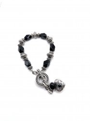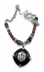 18 inches long, silver plated with black onyx beads, jet and dark topaz faceted beads, silver crested inlay. In excellent like new condition. Price: $78.00 Sale Price: $38.00 You Save: $40.00 (51%)