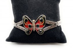 Silver plated bracelet with Butterfly accents, crystal accents, in excellent used condition, hinged design. 7.5 inches long. Price: $58.00 Sale Price: $38.00 You Save: $20.00 (34%)
